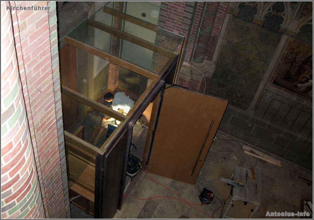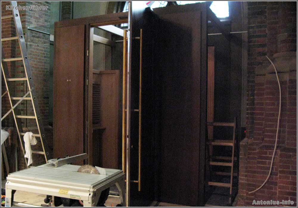 12. November 2009: Das Gerüst der Beichtraumkabine steht.