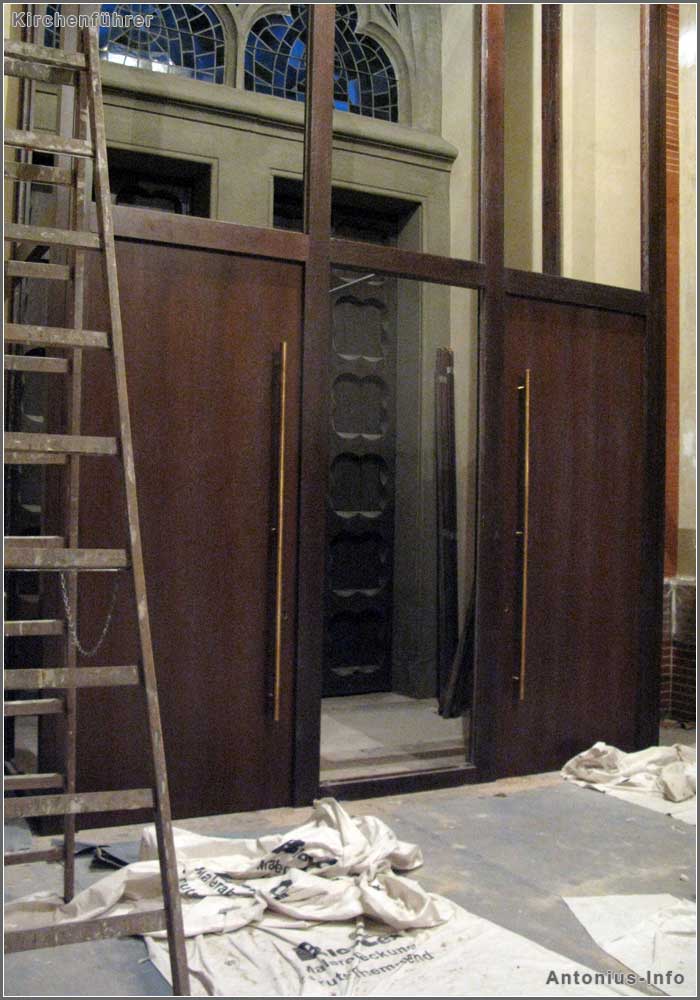 3. Oktober 2009: Die Turmhalle kurz vor der Neugestaltung. Im Bild zu sehen sind die zu entfernenden Zwischentüren zum Kirchraum.