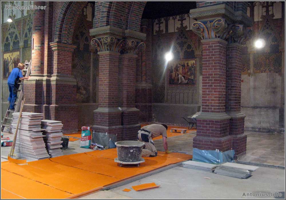 2. September 2009: Spezialmatten, die eine haftfähige Verbindung zwischen Betonuntergrund und Fliesen ermöglichen, wurden verlegt.