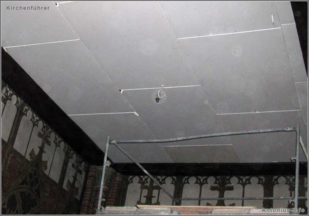 10. September 2009: Die alte, dunkle Holzdecke wird mit Gipskartonplatten verkleidet.