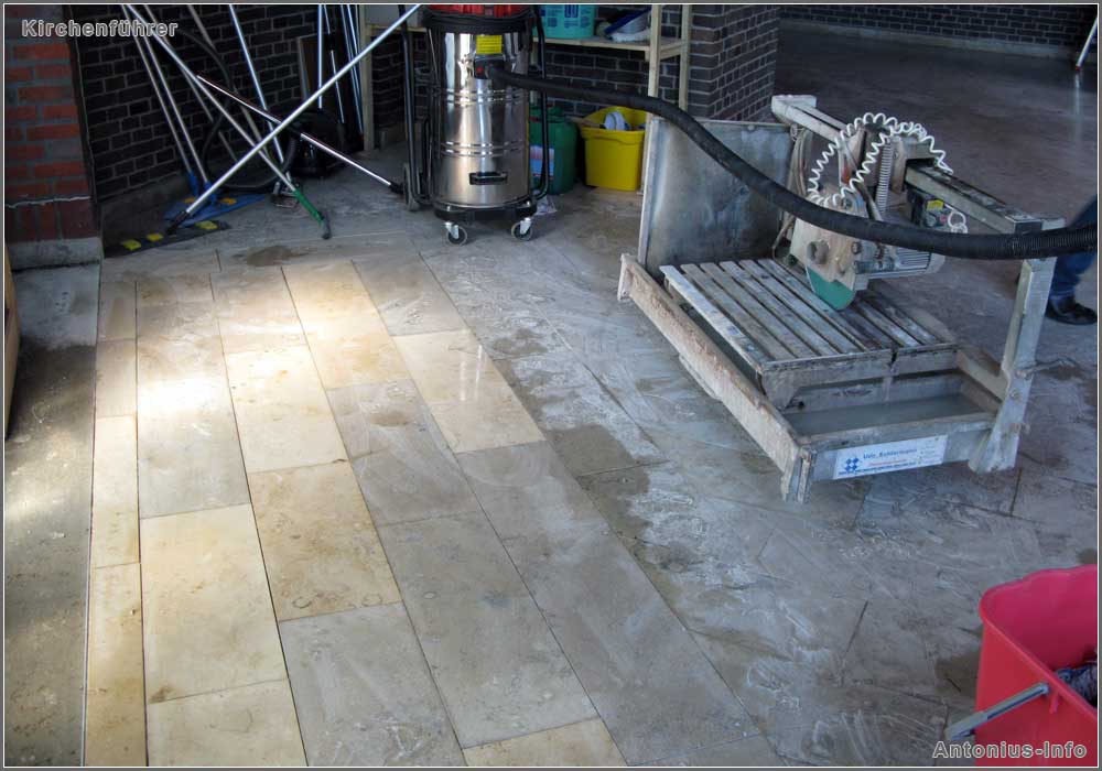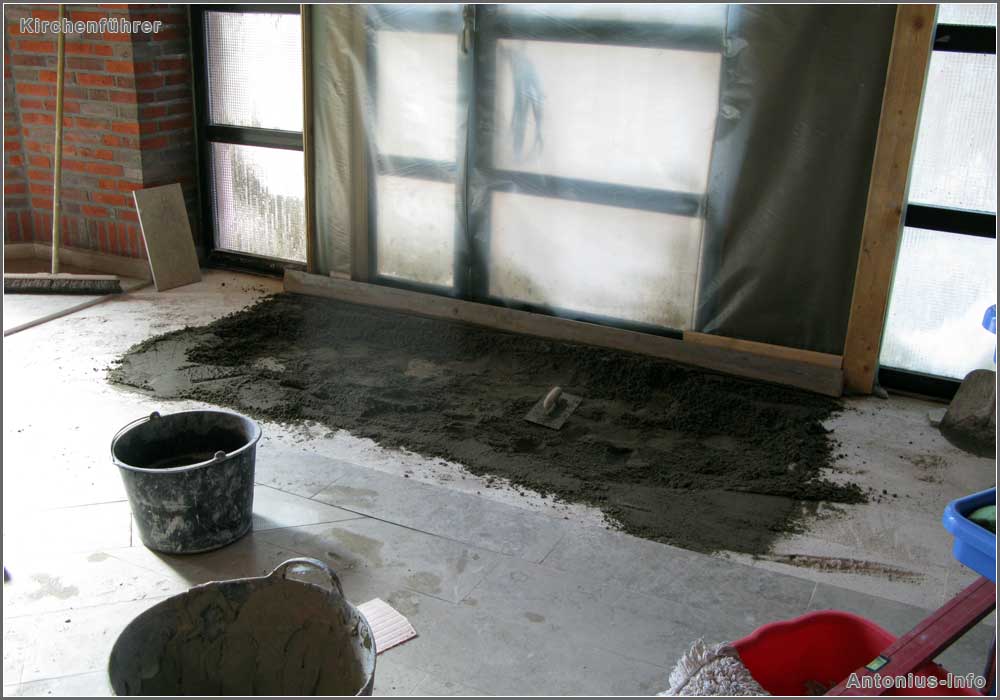 6. August 2009: Der Untergrund für die neuen Fliesen wird vorbereitet.