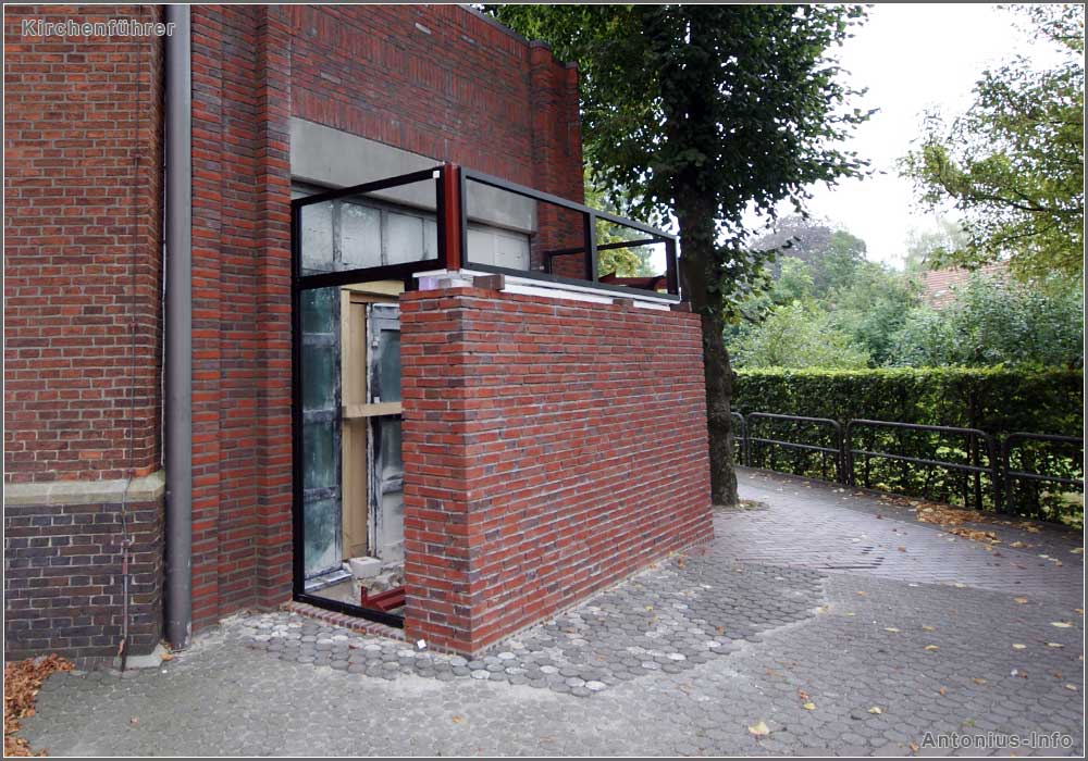 24. September 2009: Auch die inneren Türen sind entfernt worden. Die Fenster sind eingesetzt und das Dach aufgesetzt.