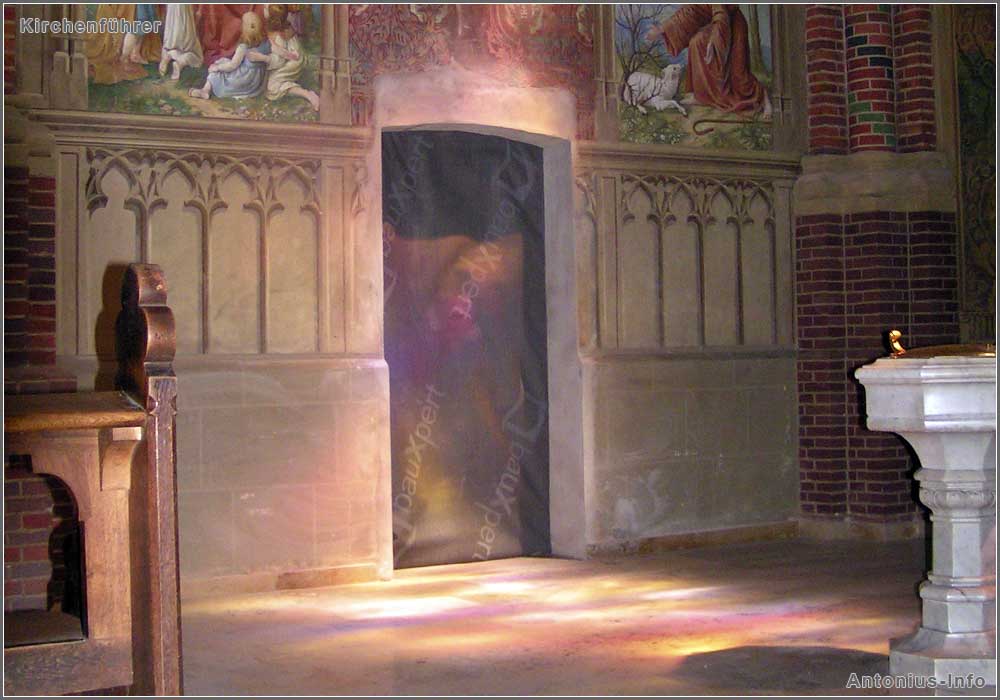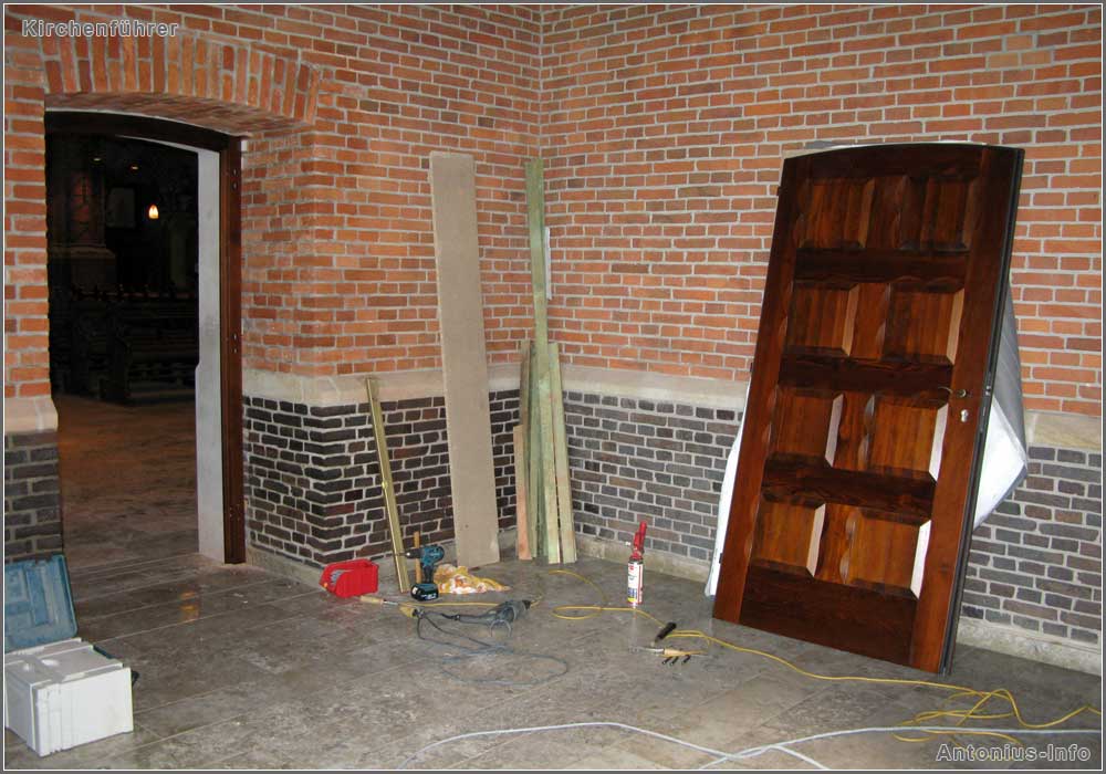 14. Juli 2009: Der Durchgang ist fertig. Er fügt sich perfekt in die historische Architektur der Kirche ein. Das Bild zeigt den Blick auf die neue Tür von der Kapellenseite.