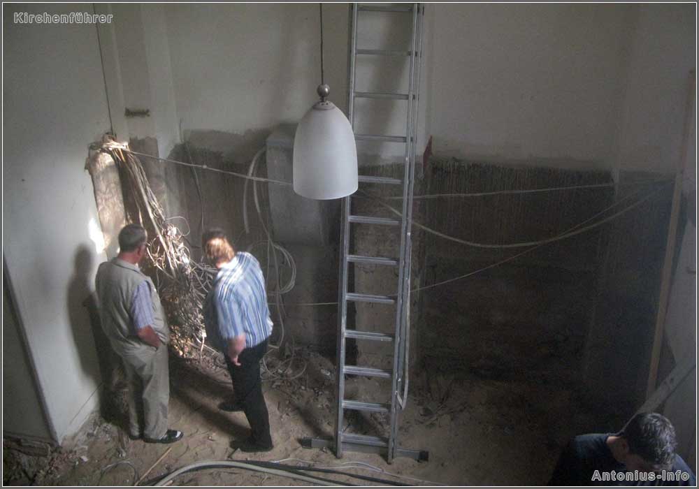 15. Juli 2009: Die Entkernung ist abgeschlossen. Der Fußboden ist entfernt, viele alte Leitungen liegen frei und müssen erneuert werden.