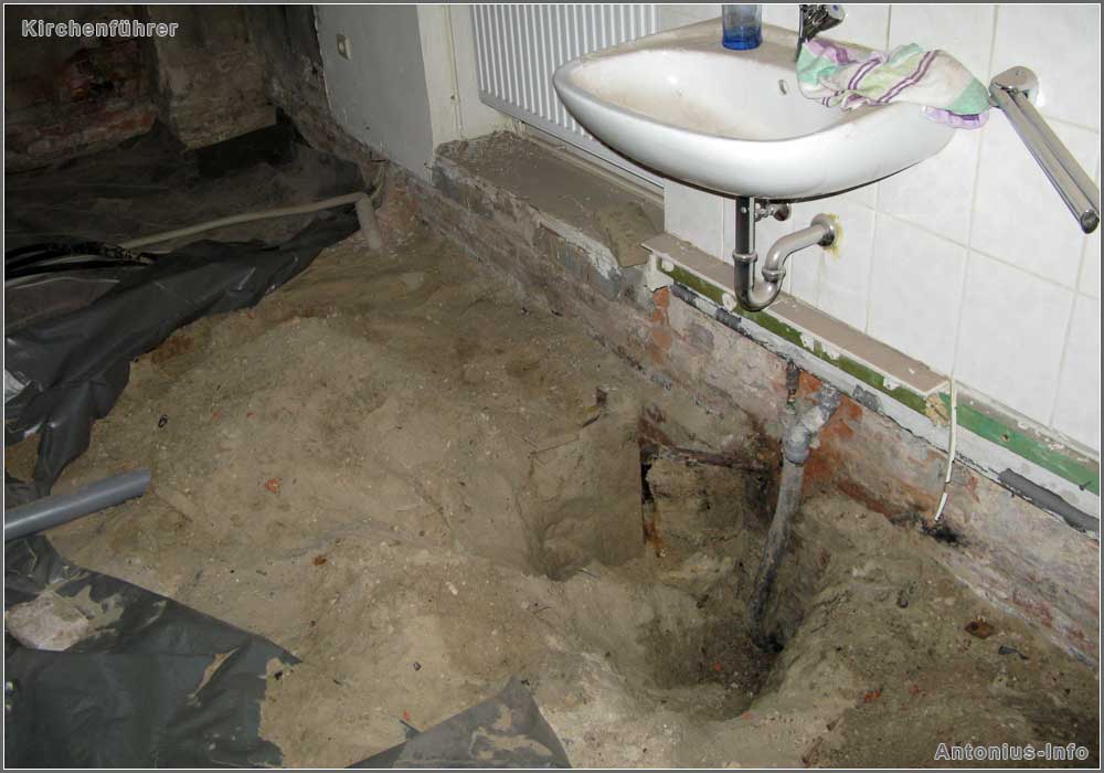 15. Juli 2009: Auch die Wasserleitungen unter dem Waschbecken sind verrottet und müssen erneuert werden.