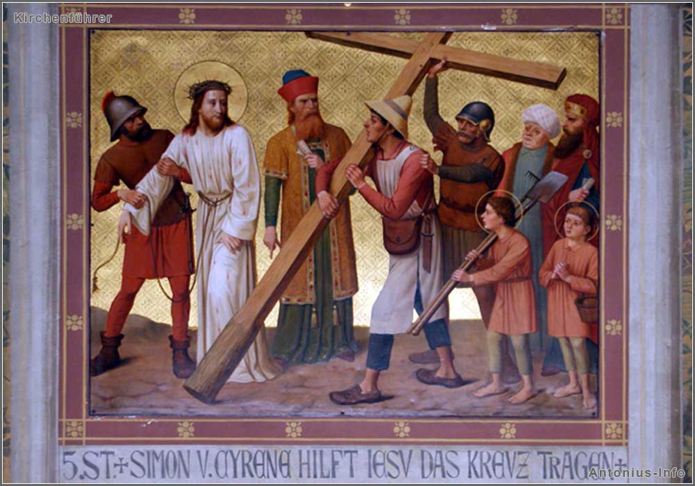 5. Station: Simon von Cyrena hilft Jesus das Kreuz zu tragen