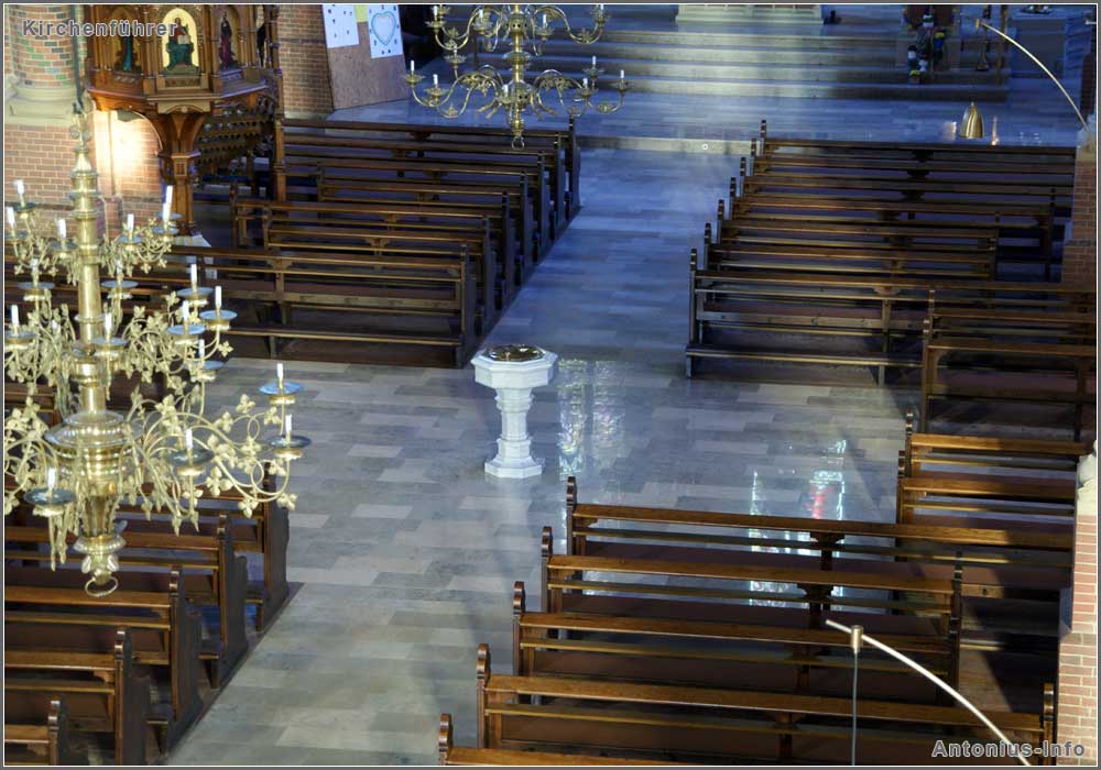 Der Taufort der St. Antonius Kirche ist zentral im Kirchraum unter der Vierung zu finden.