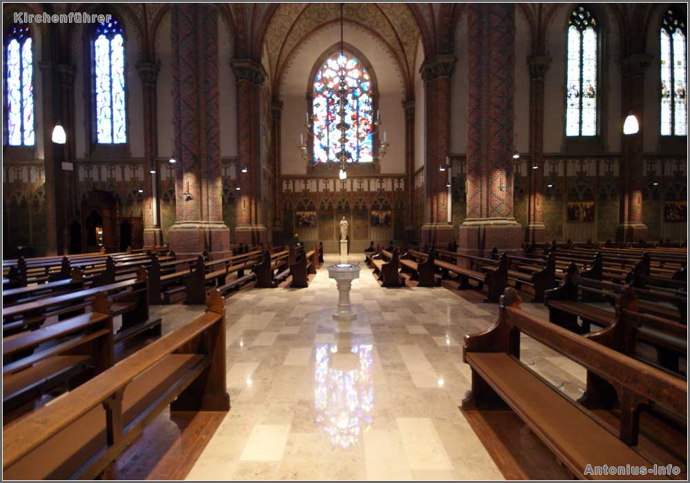 Der Taufort ist bei der jüngsten Renovierung (2009) in die Mitte der Kirche gerückt worden. Zuvor hat der Taufstein einige andere Standorte gehabt. Ursprünglich gab es im Eingangsbereich unter dem Turm eine Taufkapelle, die heutige Antoniuskapelle. Da es dort vor allem im Winter sehr kalt sein konnte, gab wohl den Auschlag, dass später viele Jahre im Chorraum getauft wurde. Dann zog der Taufbrunnen bis ins Jahr 2009 in das südlichen Querhaus um.