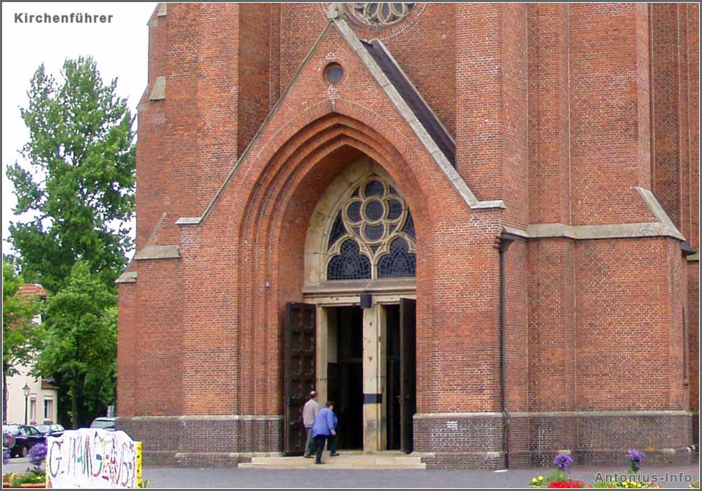 Das Hauptportal der St. Antoniuskirche öffnet sich durch zwei schwere Eichentüren.