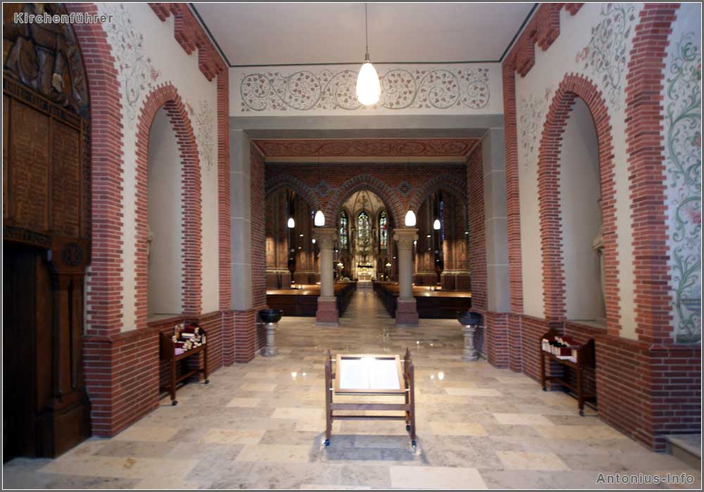 Wenn man die St. Antoniuskirche durch das Hauptportal betritt, empfängt einen als erstes der prächtige Eingangsbereich.